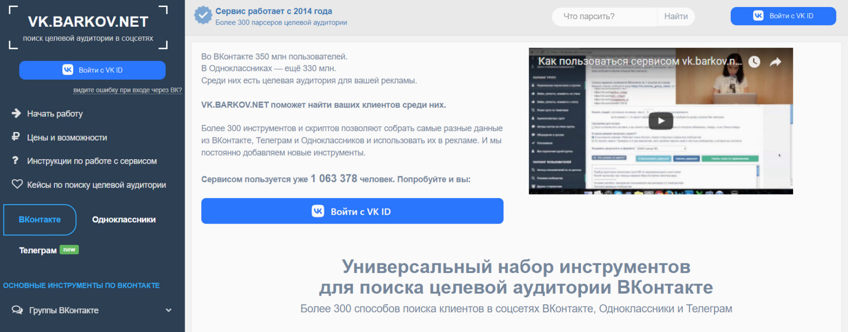 VK.BARKOV.NET — сервис для поиска и сбора целевой аудитории в ВК и других соцсетях. Подходит для маркетологов, предпринимателей и специалистов по рекламе, которые хотят быстро получать данные о подписчиках, лайках, репостах, комментариях и активности пользователей.